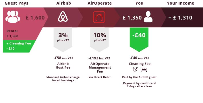 An example of the hosting charges on a typical 1 bedroom property in central London. * The guest pays for the cleaning charges